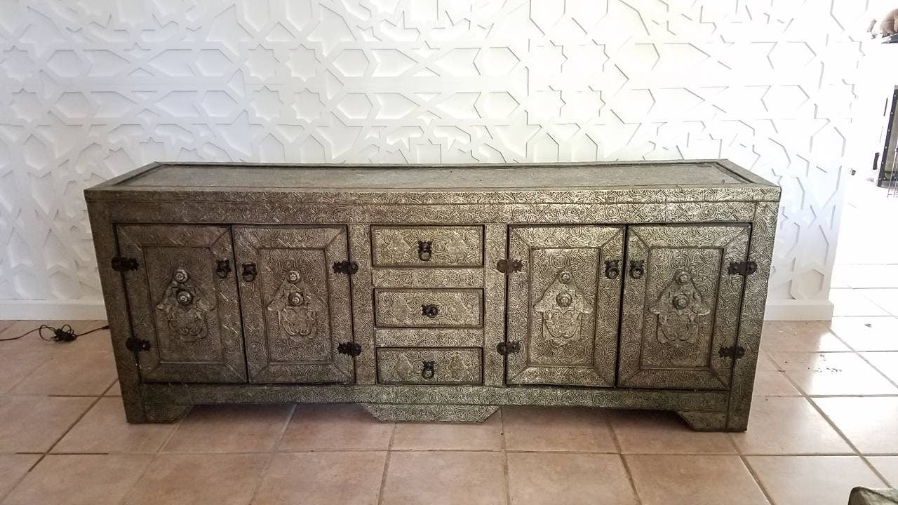 Moroccan royal handmade silver metal cabinet with metal drawers and door panels unique buffet furniture for bedroom living room