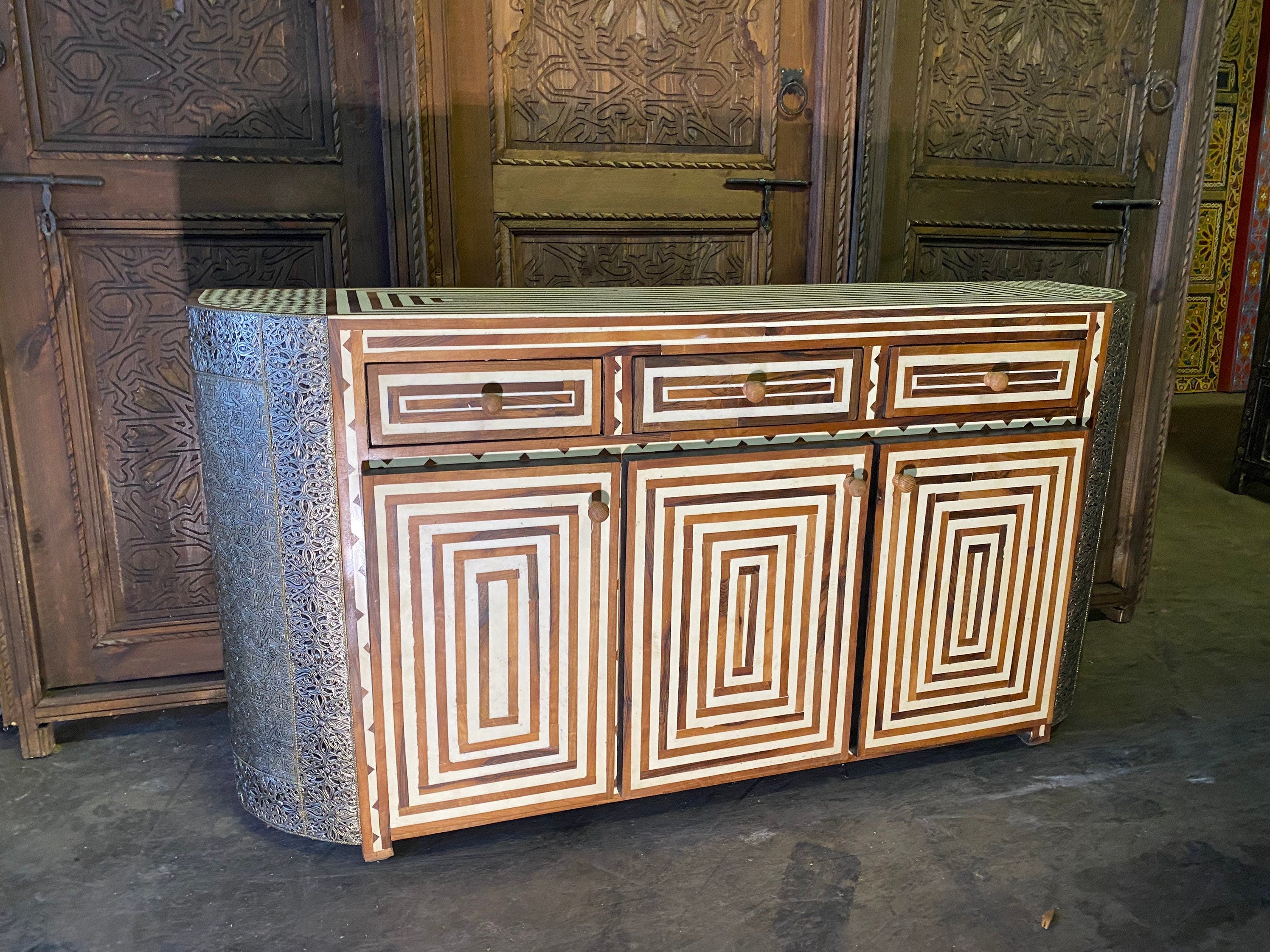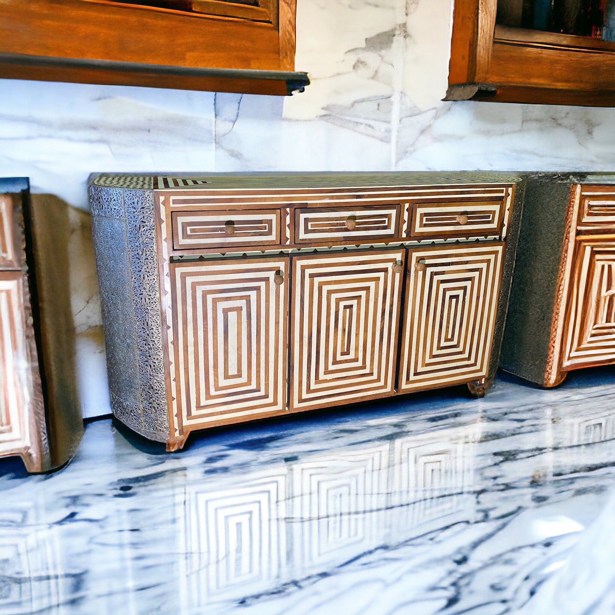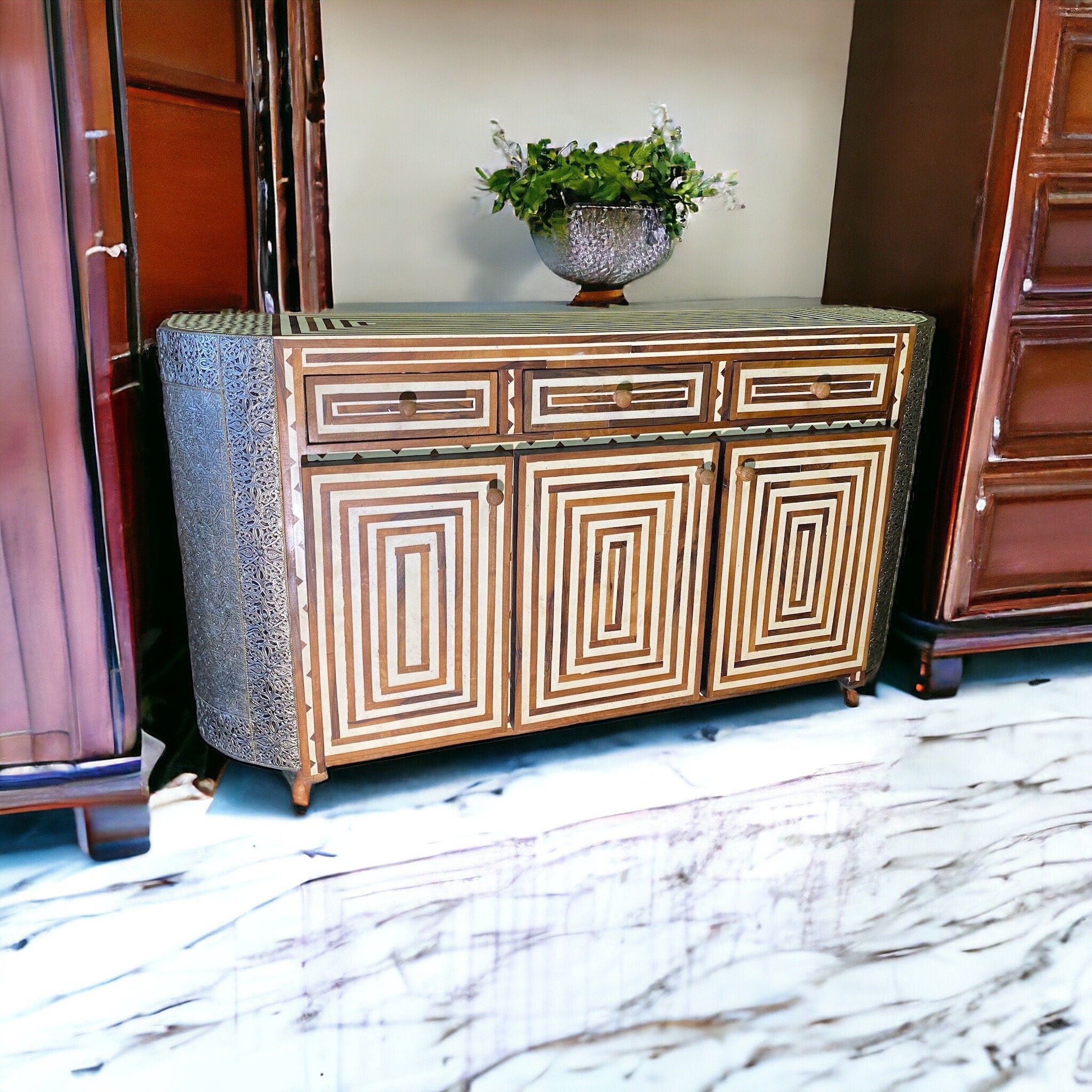 Handmade silver metal moroccan buffet bedroom furniture bone and resin cabinet moorish dresser bedroom living room bed