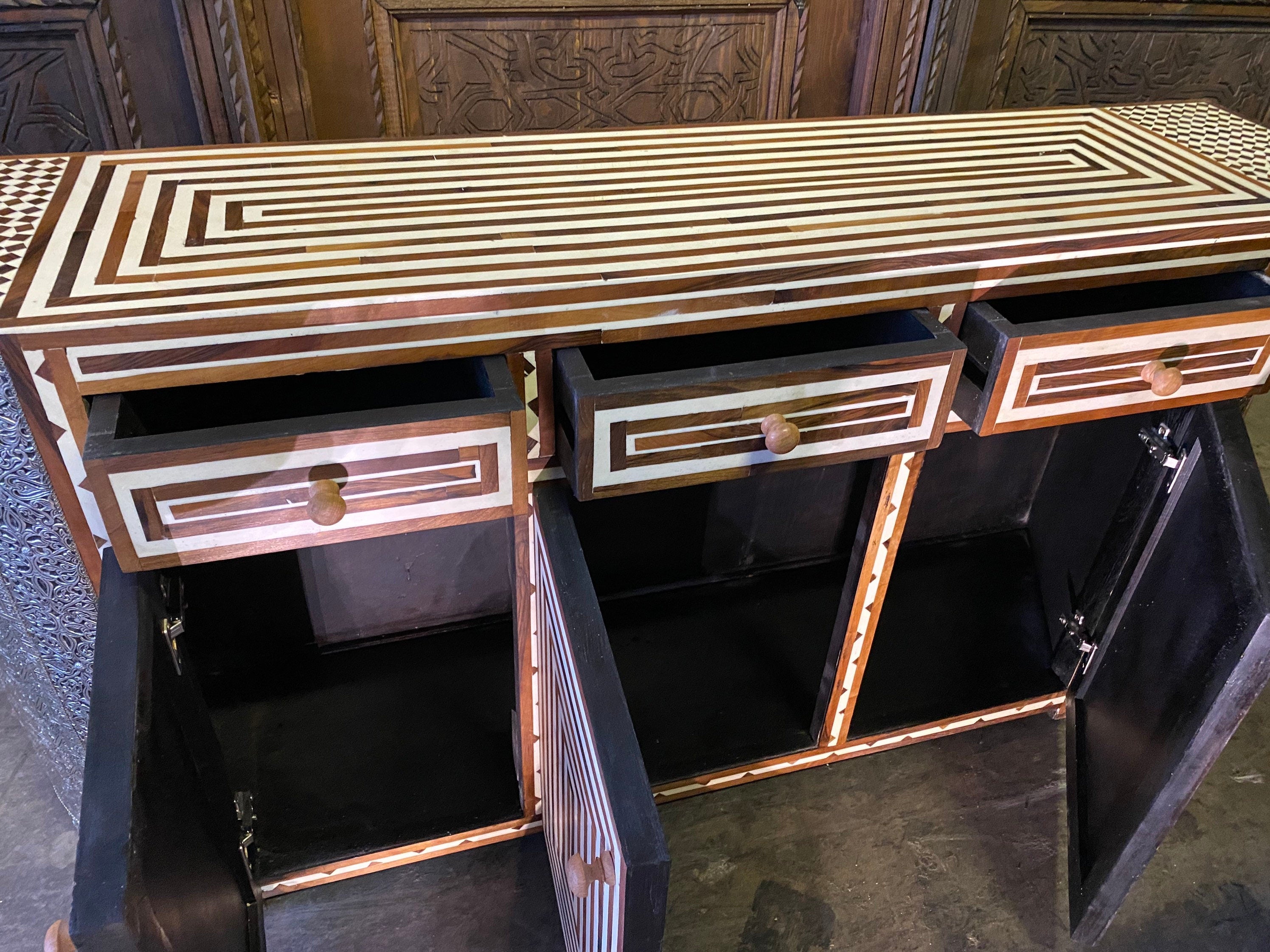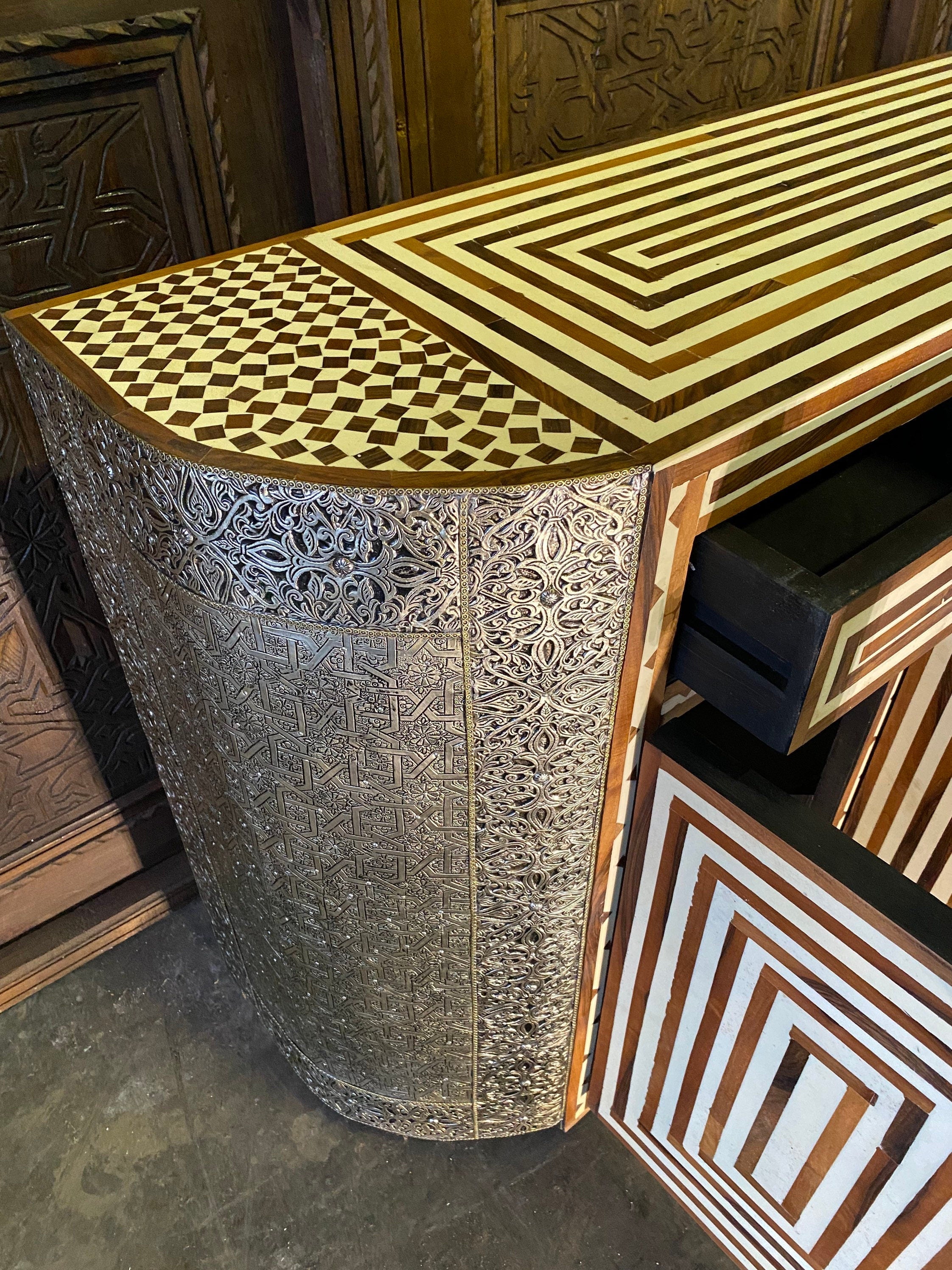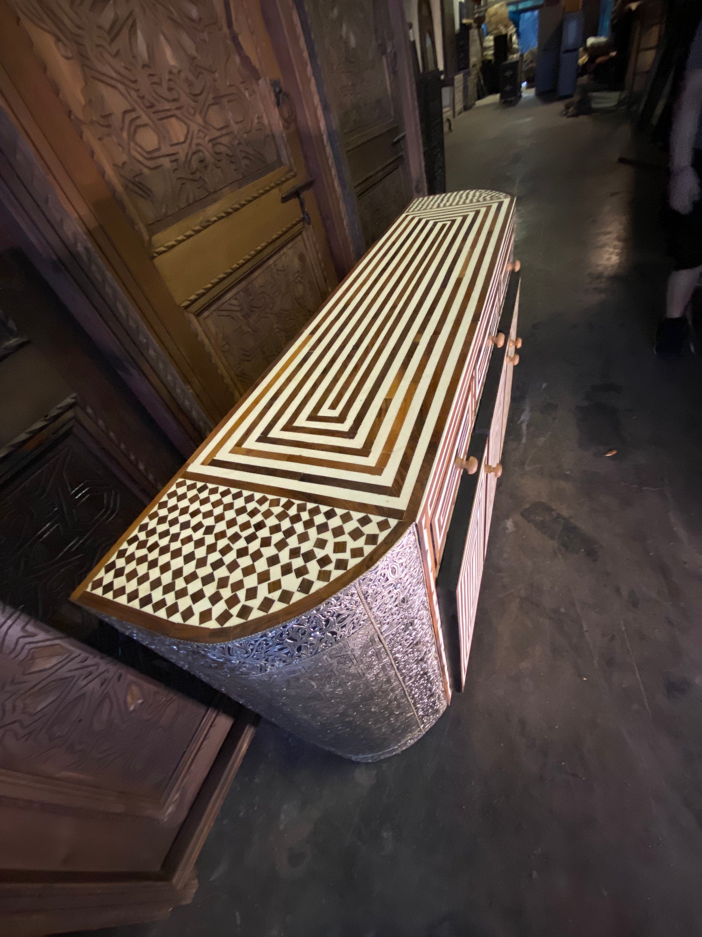 Handmade silver metal moroccan buffet bedroom furniture bone and resin cabinet moorish dresser bedroom living room bed