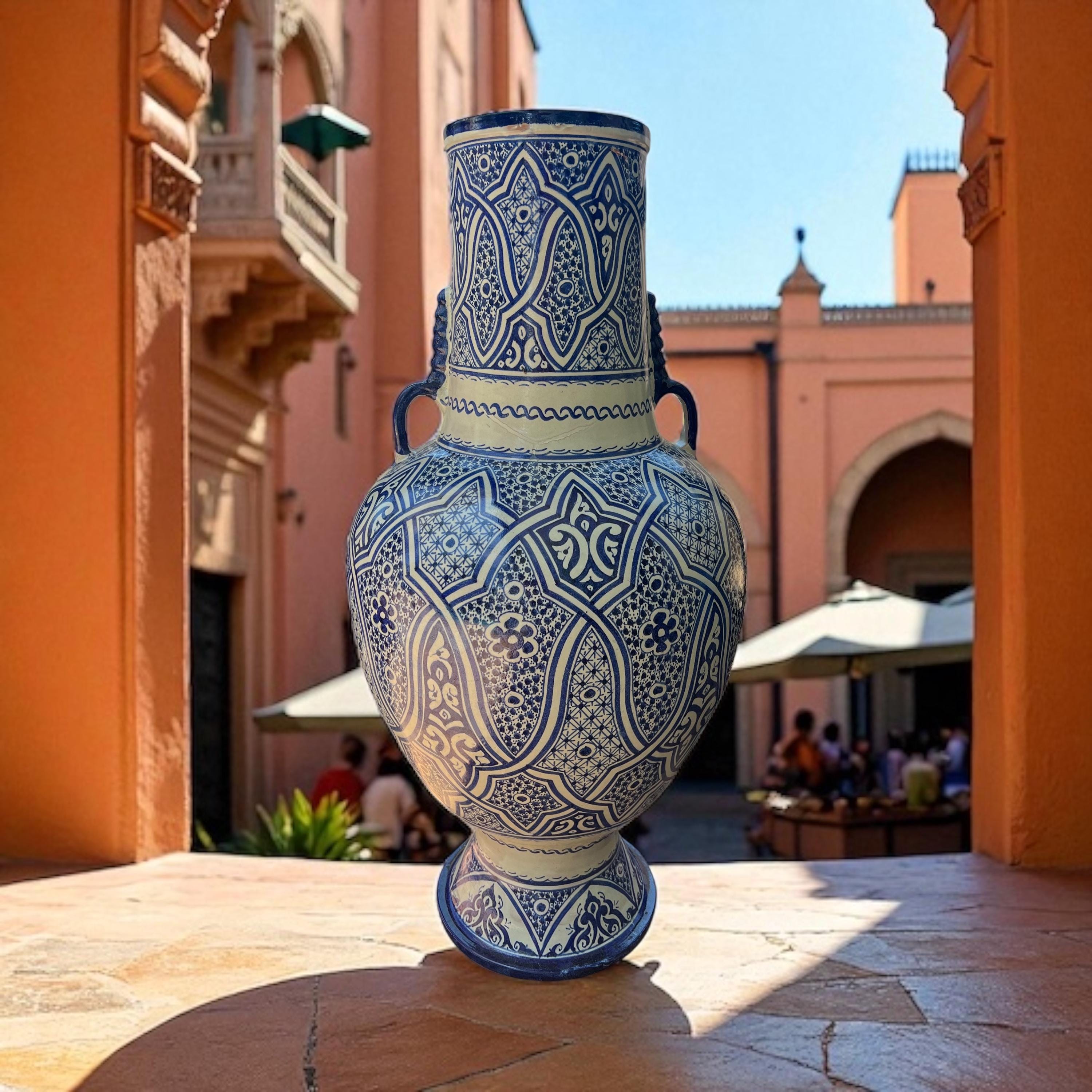Large Moroccan pottery vases are captivating pieces of art, celebrated for their vibrant colors, intricate patterns, and rich cultural history. They can add a touch of exotic elegance to any home decor, whether as stand-alone decorative items or functional pieces.