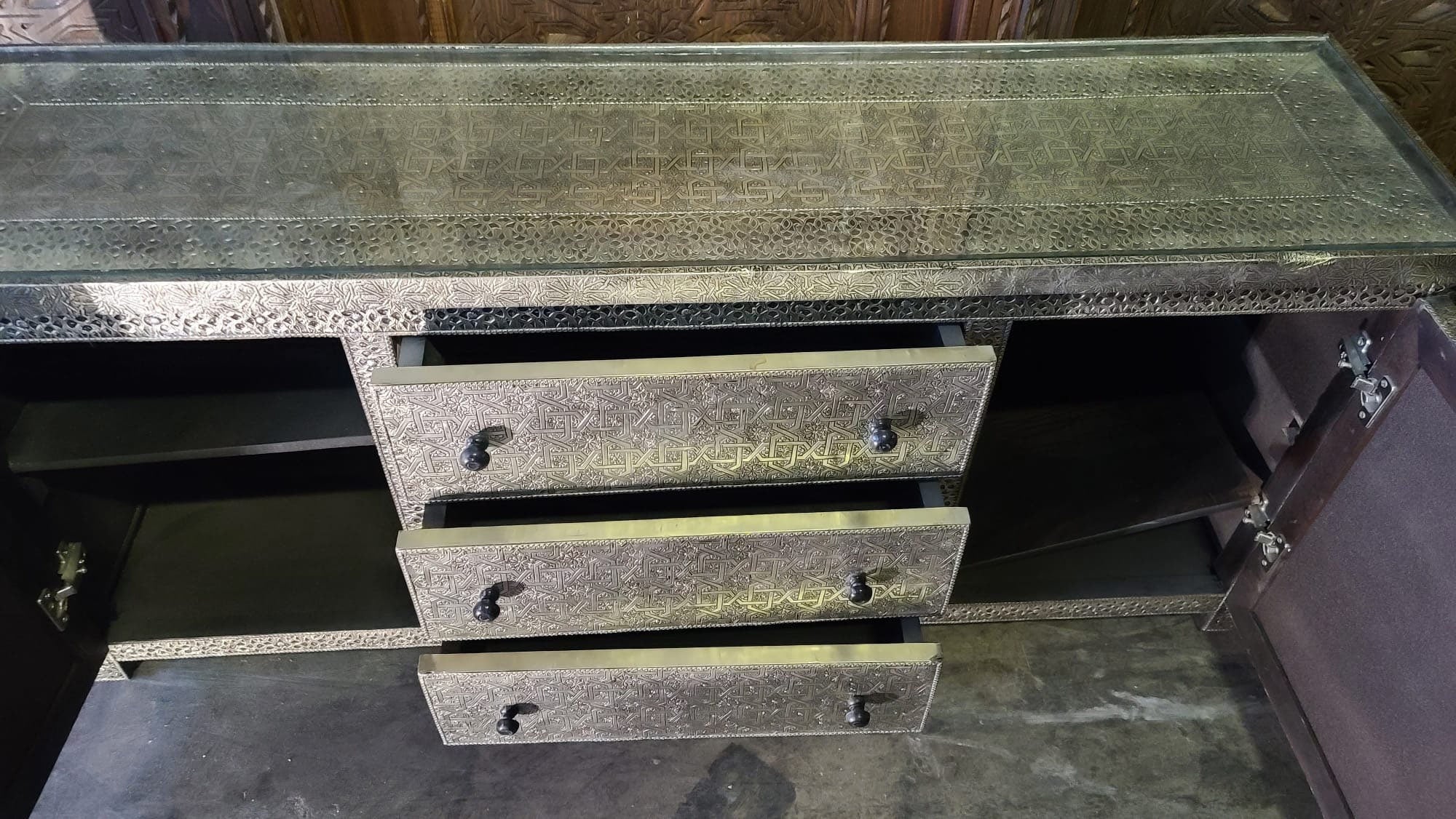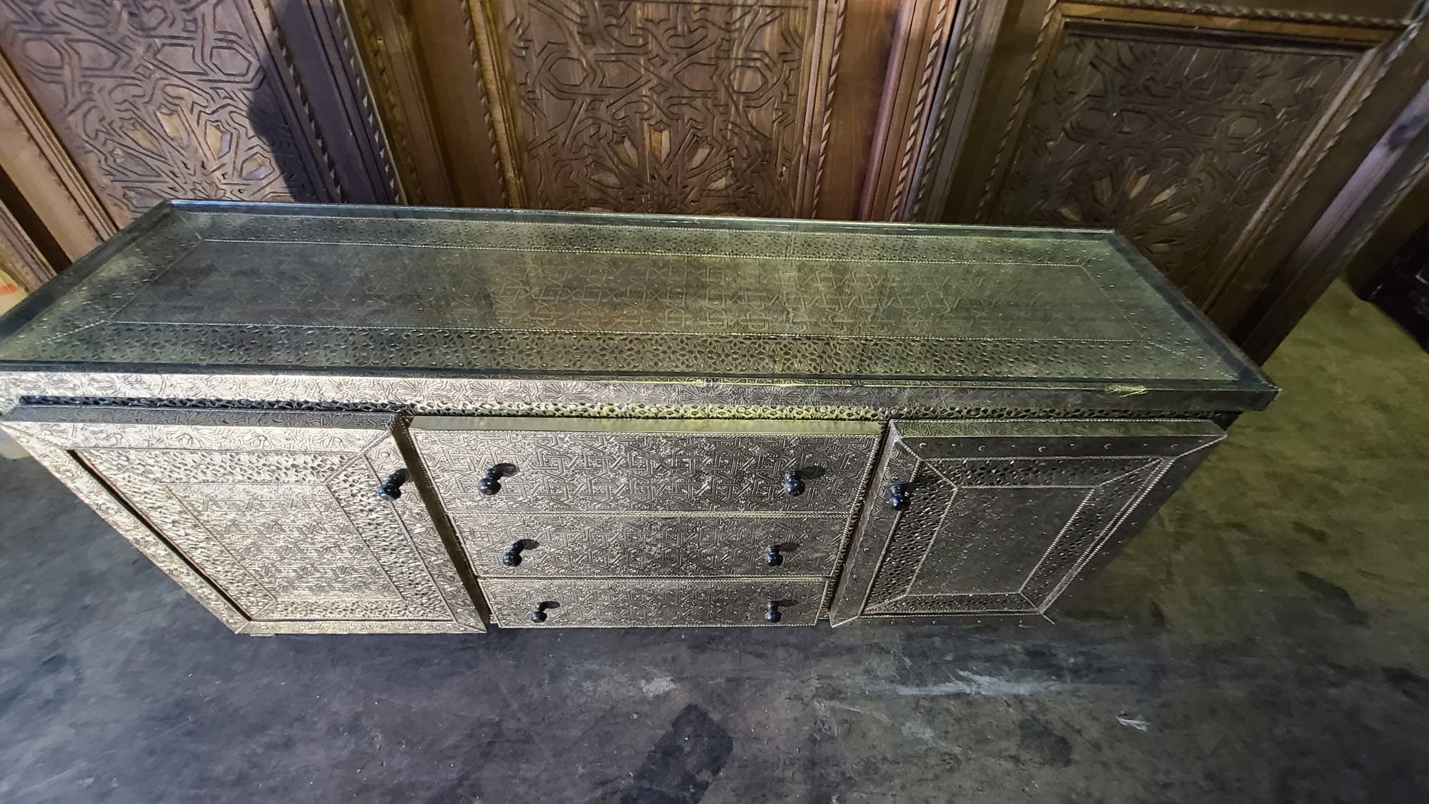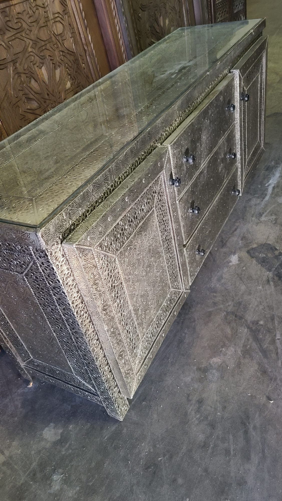 Moroccan royal handmade silver metal cabinet with metal drawers and door panels unique buffet furniture for bedroom living room