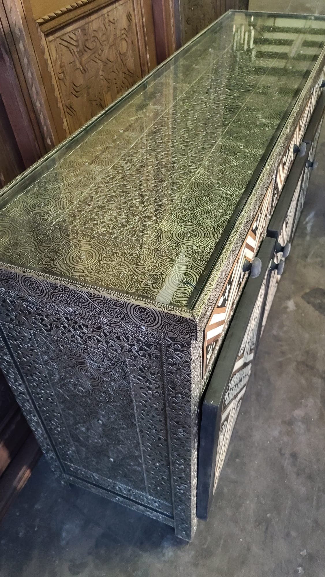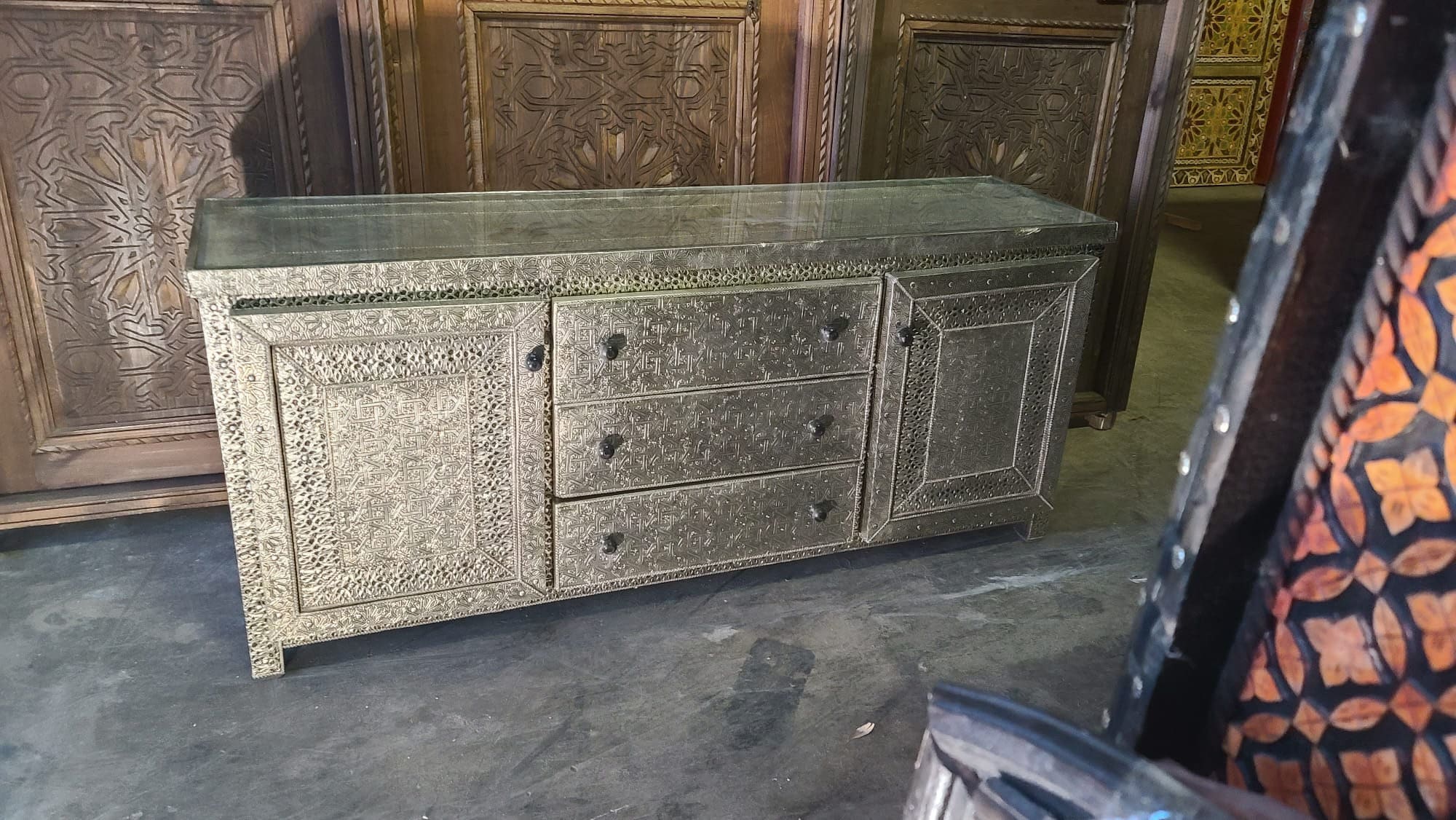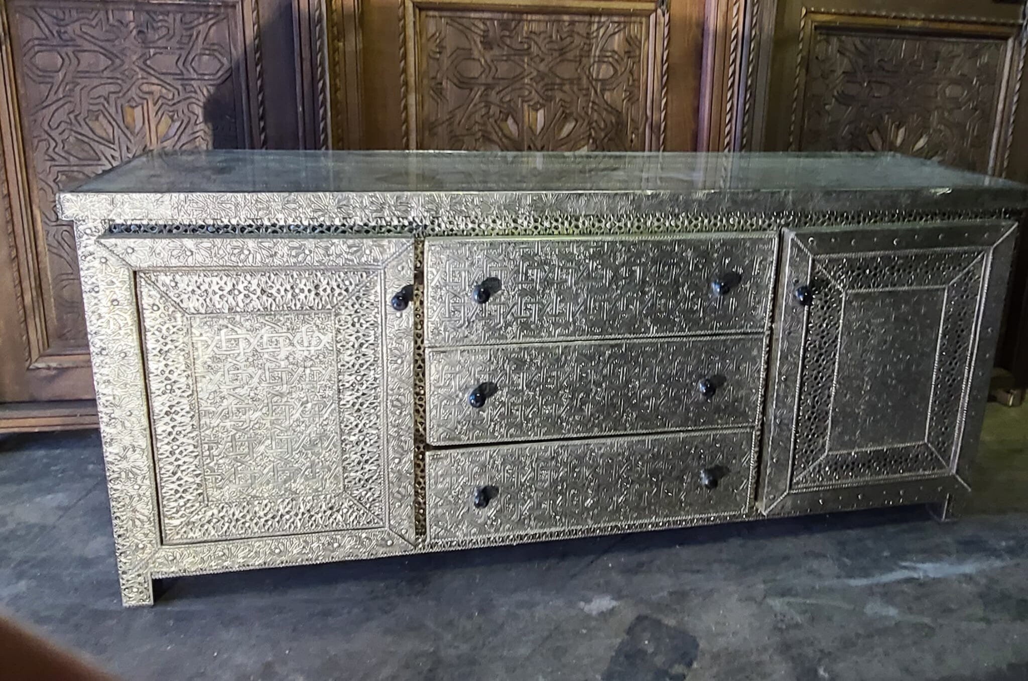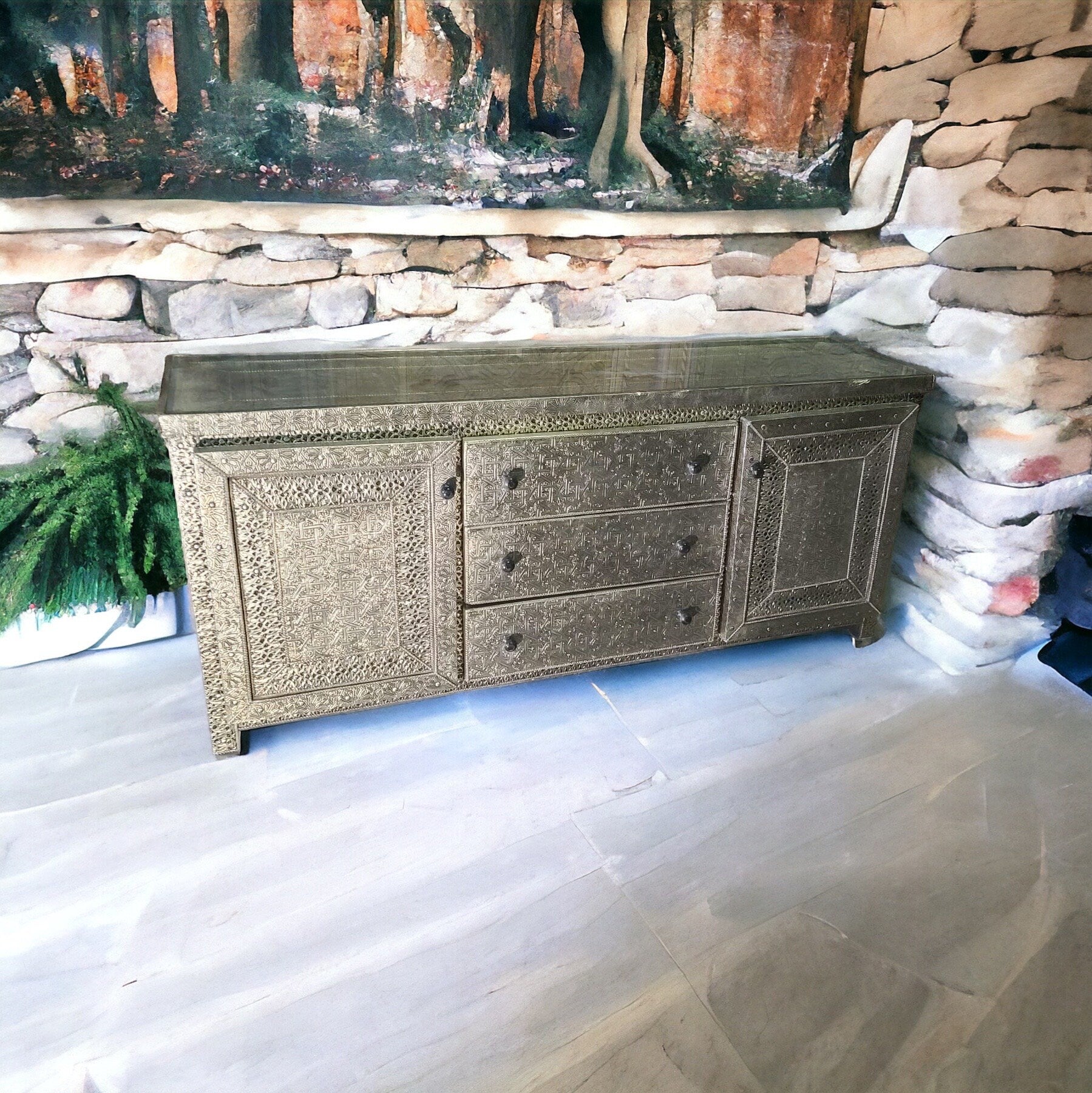 Moroccan royal handmade silver metal cabinet with metal drawers and door panels unique buffet furniture for bedroom living room