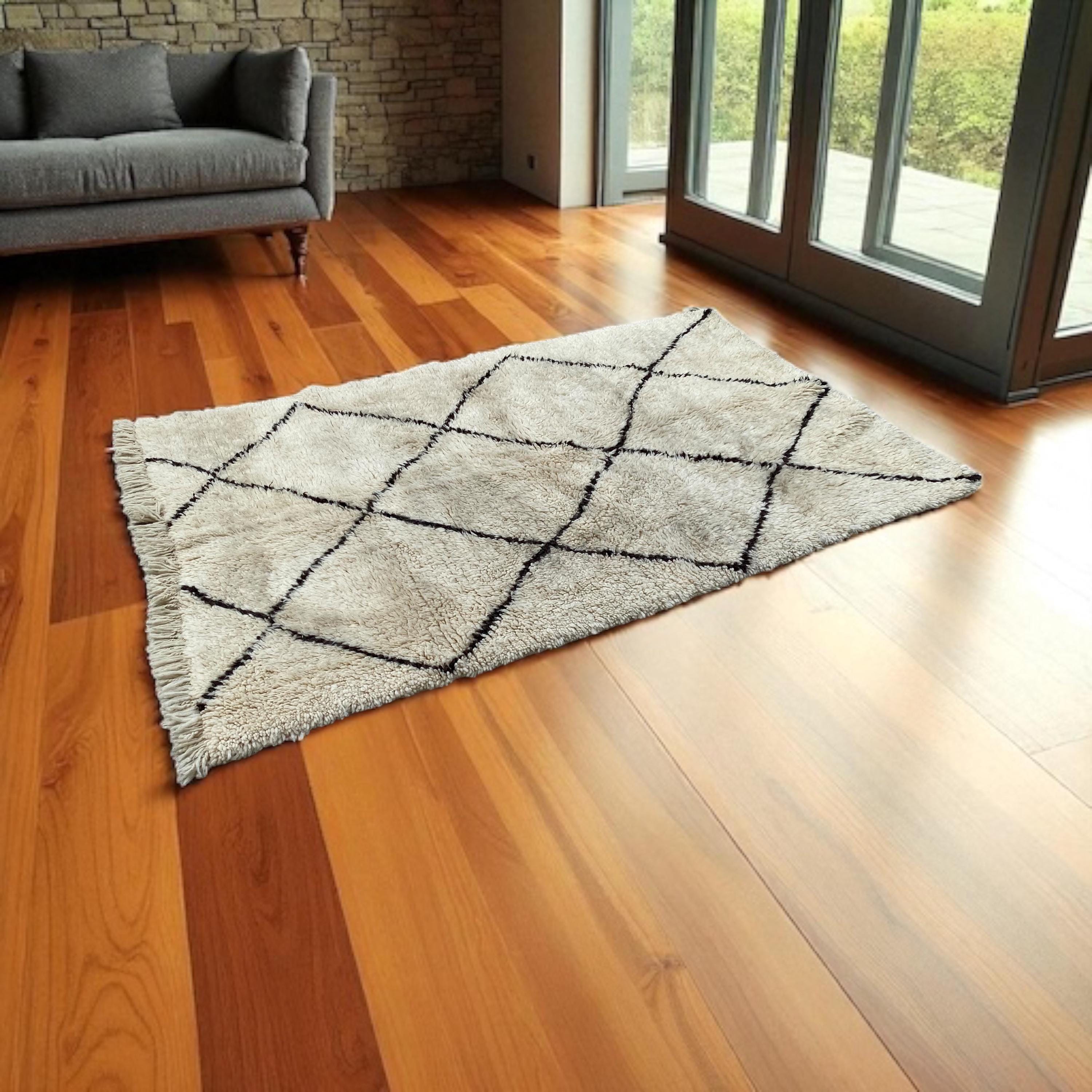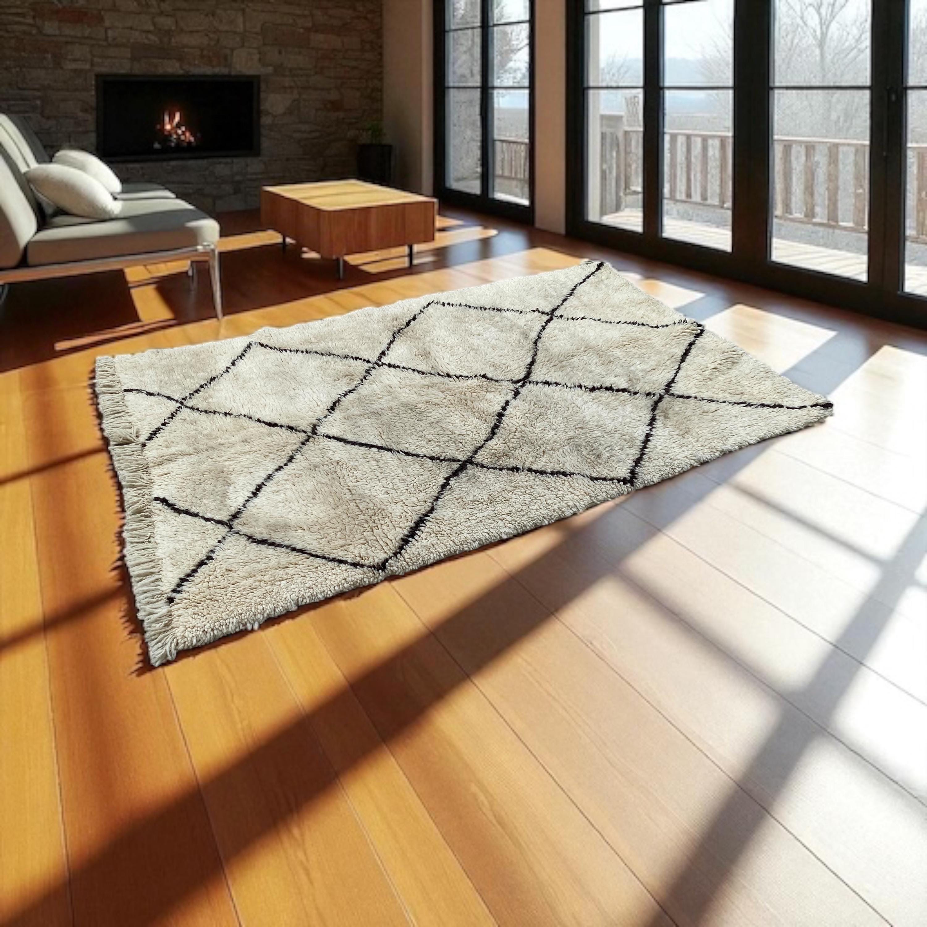 Vintage beni ourain wool clean washed rug handwoven carpet great for hallway or bedroom