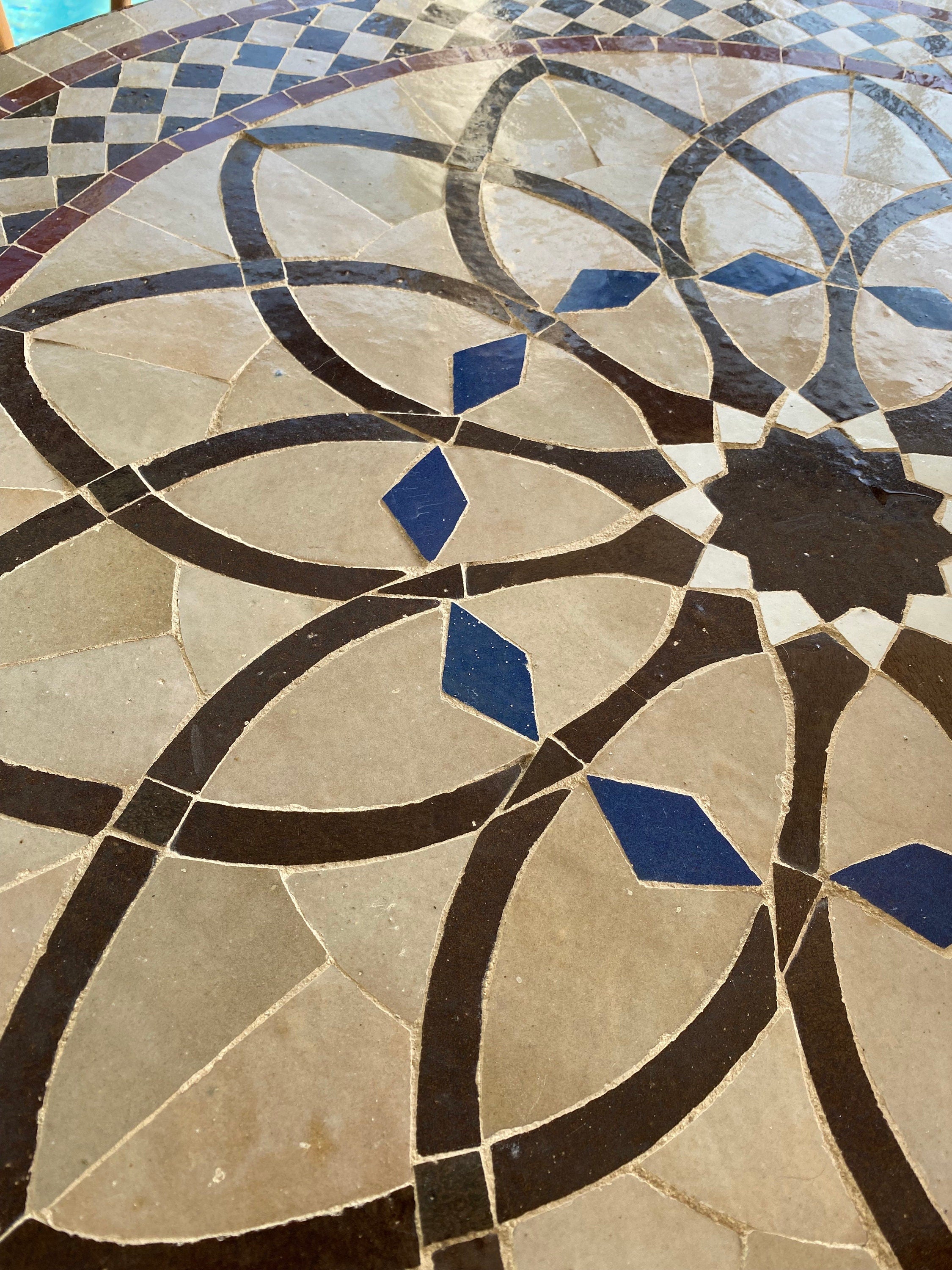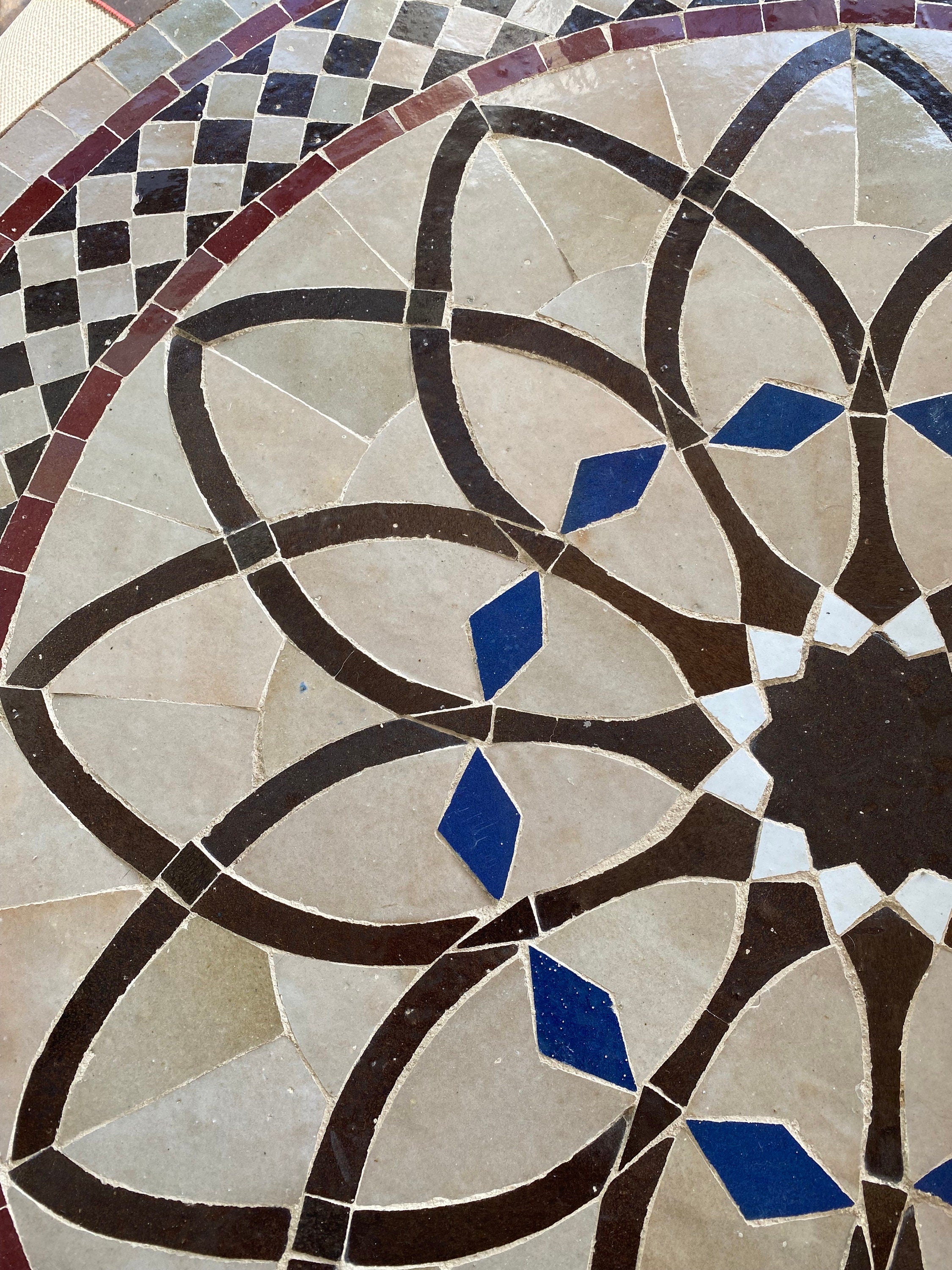 An outstanding moroccan mosaic tile table with andalusian tile work.