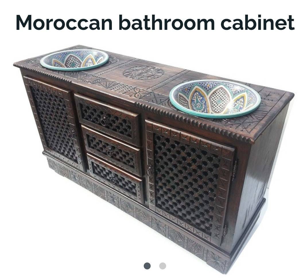 The moroccan bathroom on your left is just for bathroom ideas and how a moroccan sink fit on a mosaic counter top...