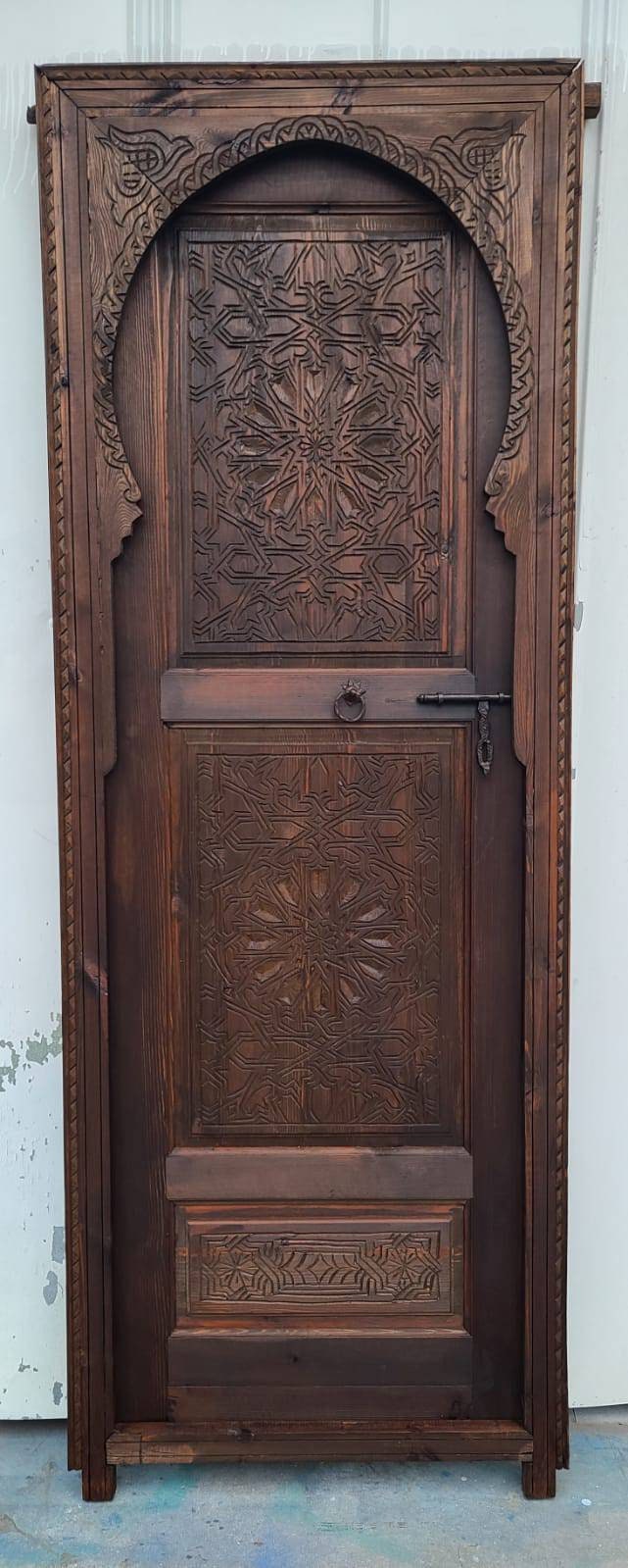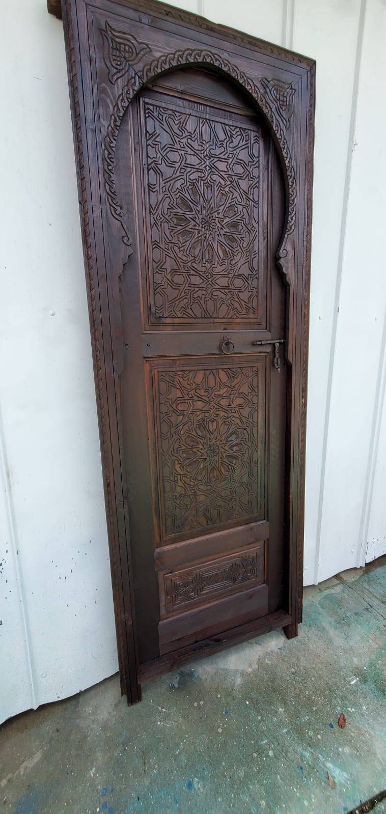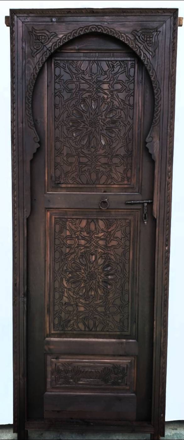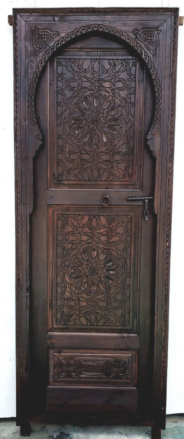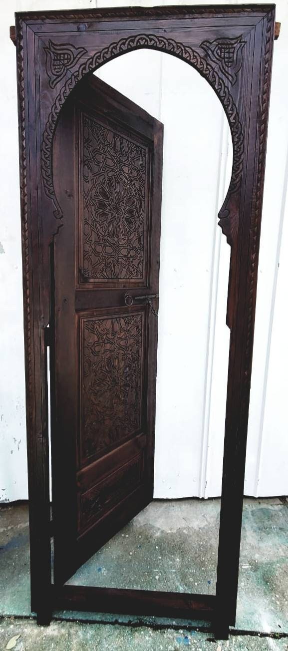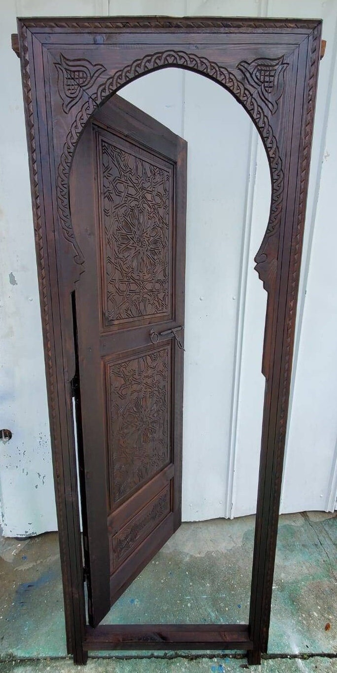 Moroccan arch hand carved interior bedroom bathroom door moorish Alhambra palace architectural wood work piece wooden door for your closet